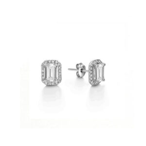 Emerald Cut Diamond Halo Stud